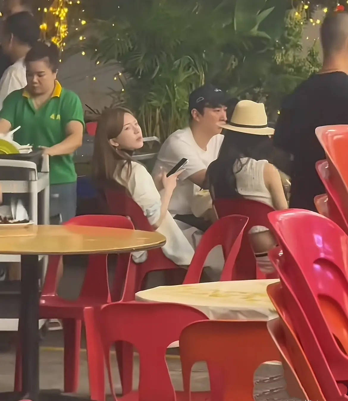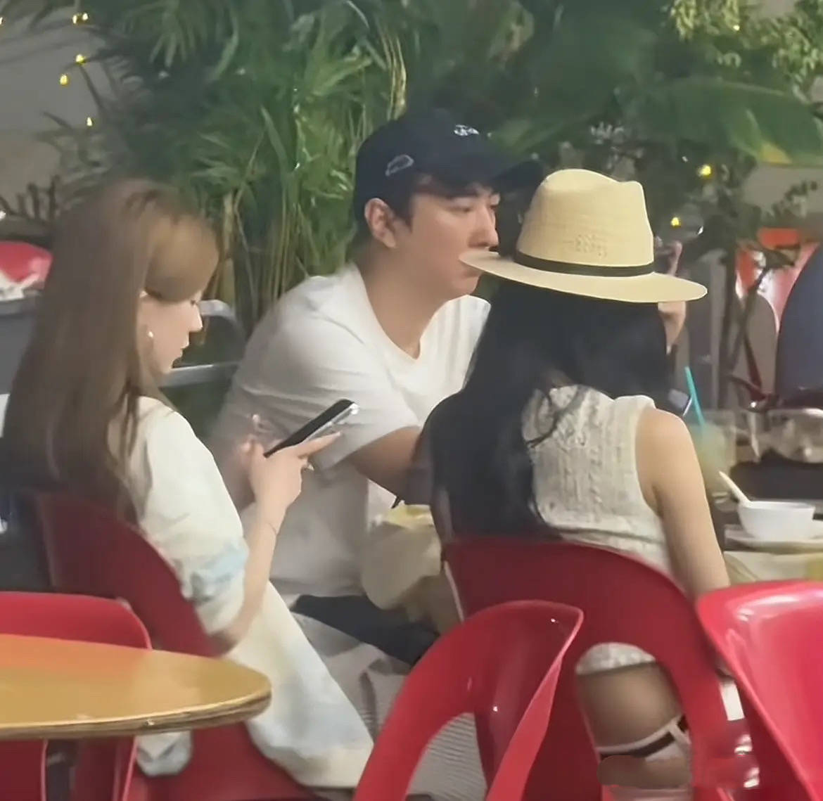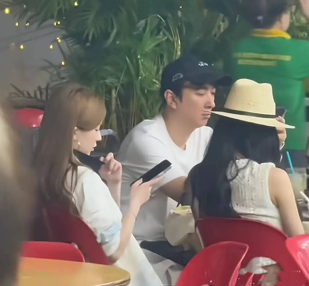在新加坡吃大排档的王思聪,穿着白色T恤、带着棒球帽,整个人很休闲。和他一桌的、还有4位大美女。