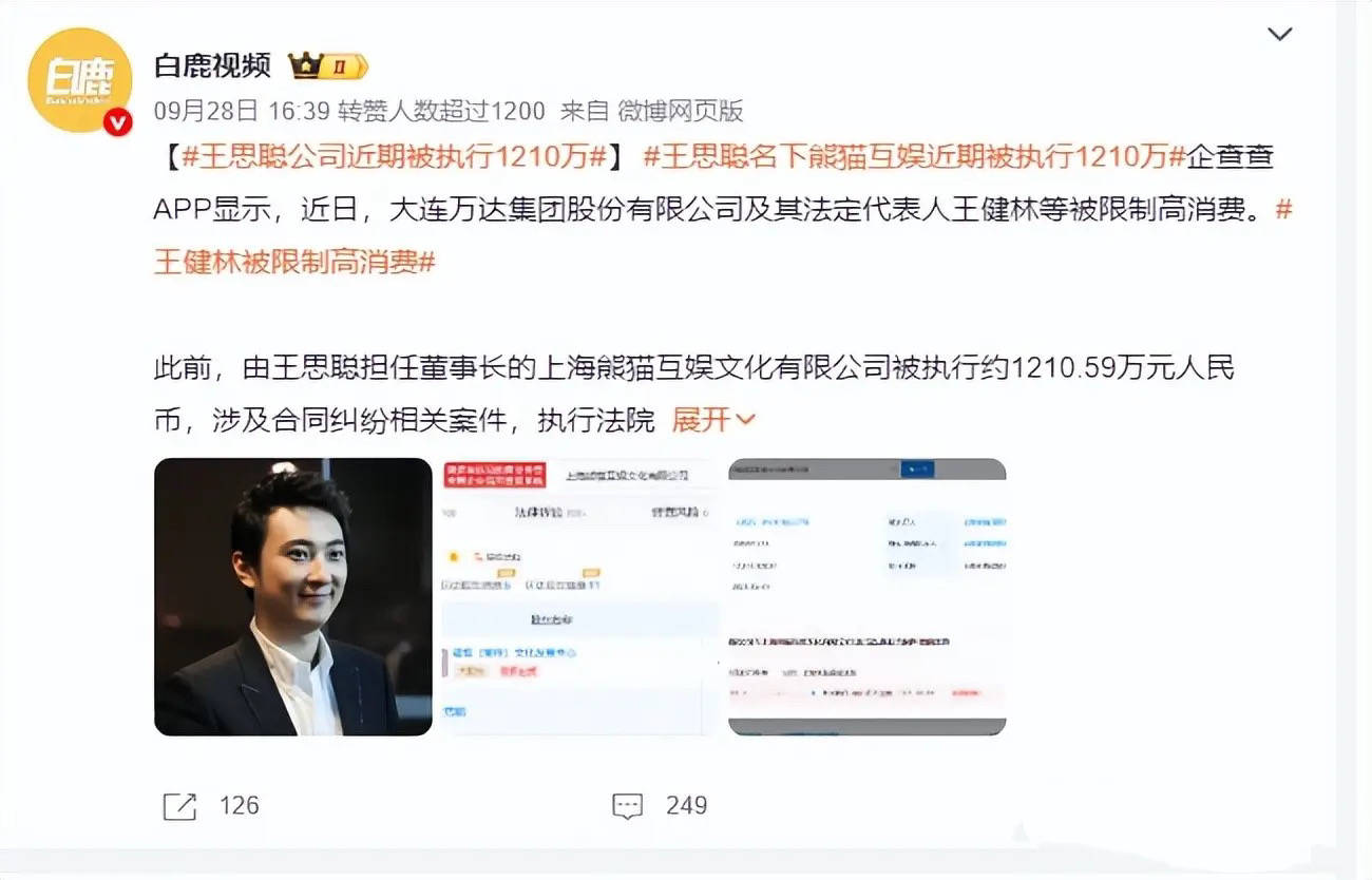 虽然王思聪早就不执着于创业了,但她还是上海熊猫互娱文化的董事长。此前他的公司被强制执行约1210万人民币,这对王思聪来说根本不算什么。毕竟随便买一套豪宅,就是六千多万。
