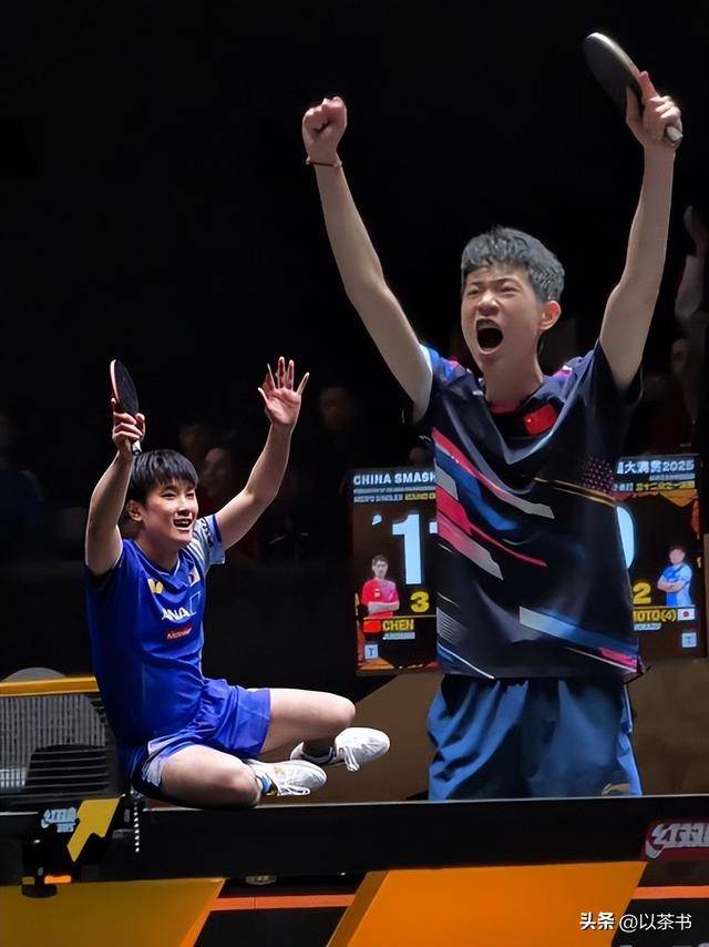 赛点时刻,张本智和孤注一掷地高吼扣球,却被陈俊菘反手直线巧妙挡回。当张本智和回球冒高的瞬间,陈俊菘毫不犹豫地暴扣得分,打赢了张本智和!