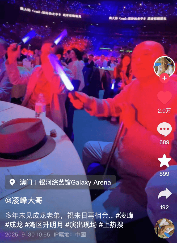 前两日,“湾区升明月”晚会在澳门举行,现场汇聚了大湾区的文化、演艺界重量级人物。凌峰也应邀出席,并被安排在主位量。
