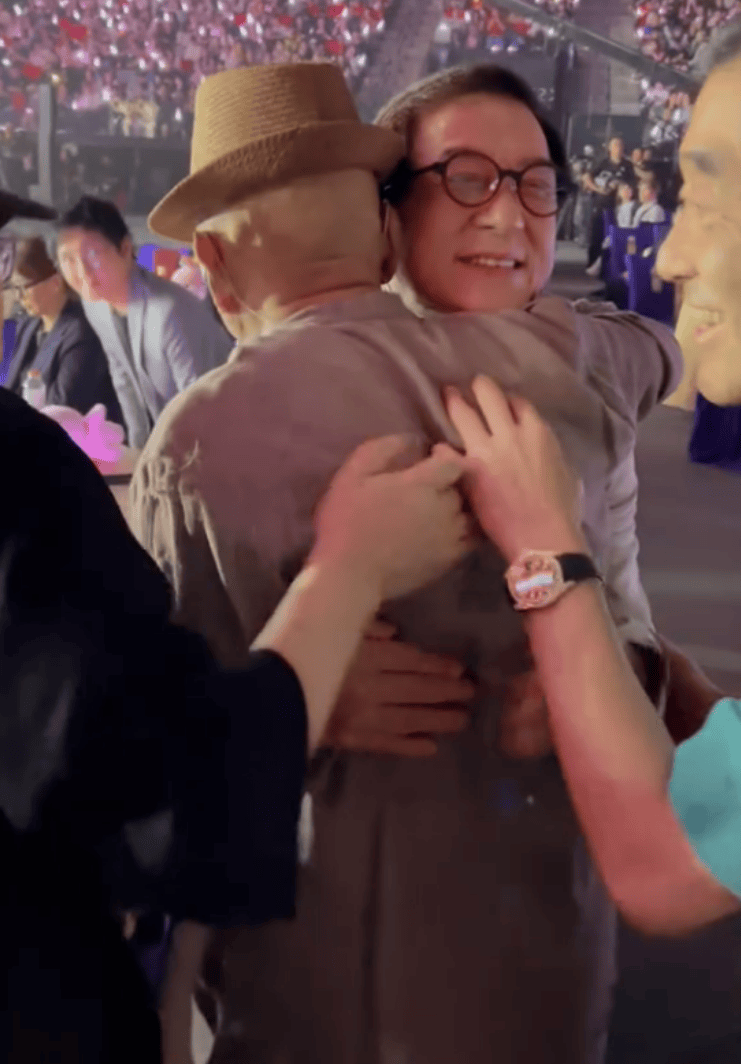 到了晚会现场,当成龙看到凌峰时,第一反应是起身迎接,两人相拥,显得非常开心。