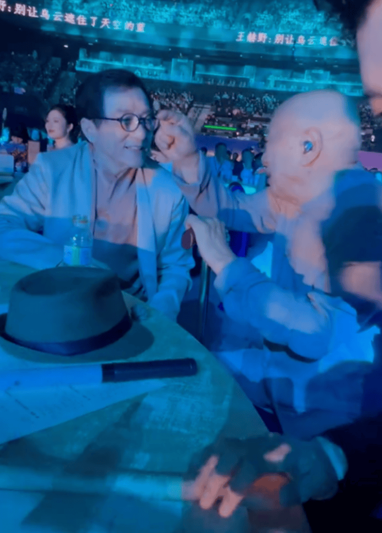 在现场时,凌峰与成龙并肩而坐,交谈不断。由于现场嘈杂,加上年事已高,凌峰戴着助听器,但对话中依然显得从容稳重。而成龙则不时点头聆听。