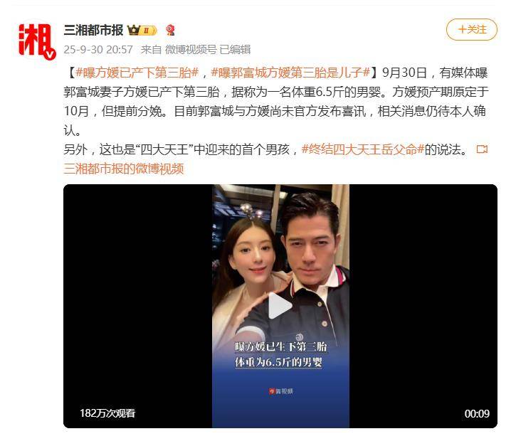 一石激起千层浪!近日,港媒曝出郭富城妻子方媛已秘密产下第三胎,而且是个重约6.5斤的儿子。消息一出,迅速引爆网络——这不仅意味着郭天王“儿女双全”,更一举打破了困扰“四大天王”多年的“岳父命”魔咒。