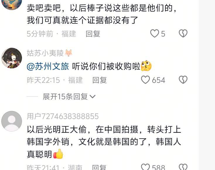 还有人提出一个阴谋论,苏州都是以仿古的建筑居多,韩国买下苏州这个电影世界以后,岂不是就可以名正言顺的说这些古风是韩国的了?