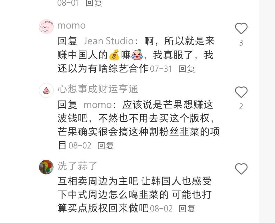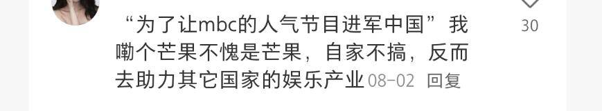 也有网友替芒果台辩解,表示按芒果的德性,这可能不是为了偷文化,主要还是为了割韩娱爱豆粉丝的韭菜来赚钱,总之是为了利益。