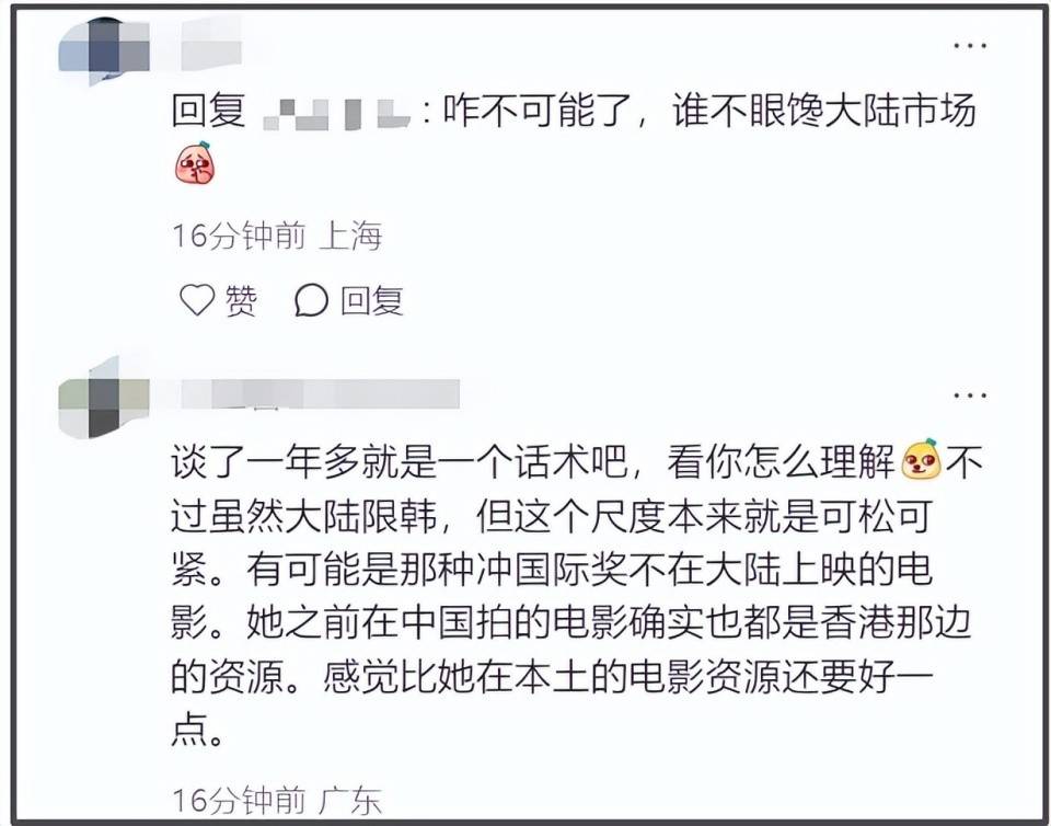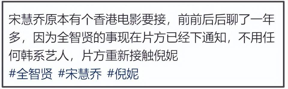 不只是华谊,宋慧乔也惨遭波及,有网友爆料称, 她本来有重新进军内地的野心,在接触一部港圈电影,接触了快一年了。