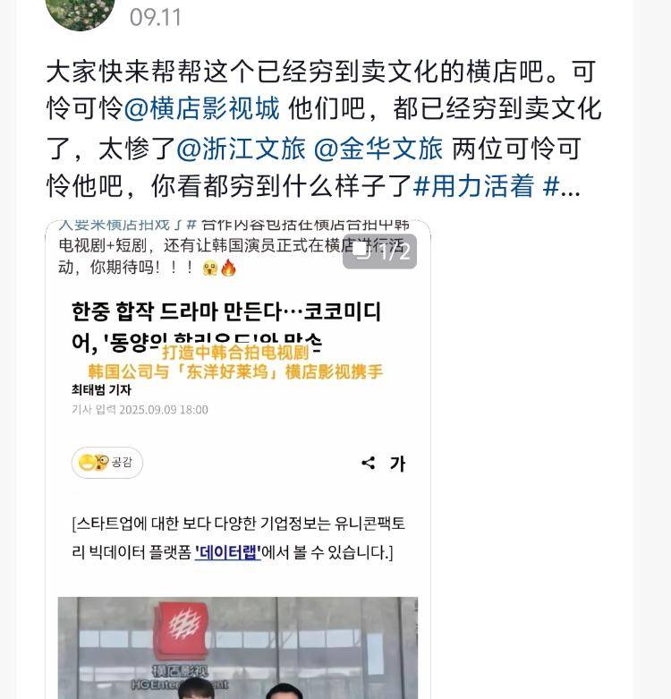 横店影视也因为和韩国影视的合作,被骂的体无完肤。
