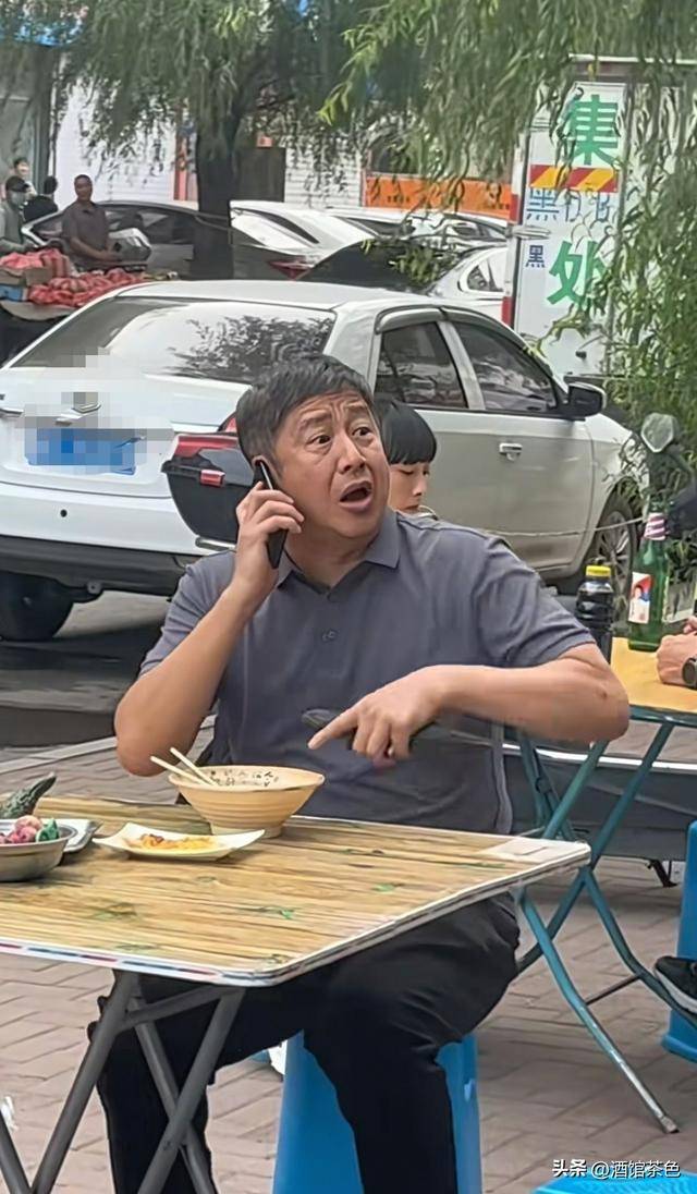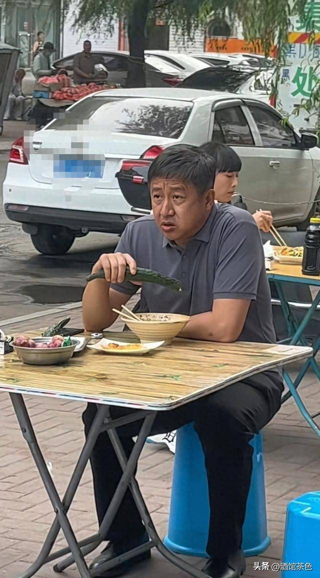 只见他穿着灰色穿着灰色短袖衬衣,独自坐在小凳子上,吃着大碗面,然后吃完之后,还拿起桌子上的黄瓜吃了起来,接到一个电话后,他就急匆匆的上了一辆黑色车。
