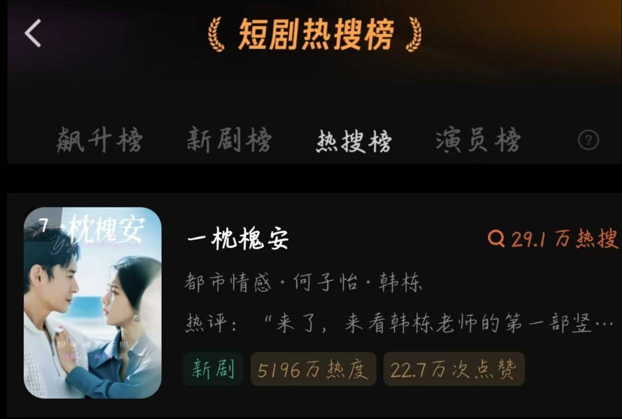 如今,韩栋转换赛道演短剧,《一枕槐安》播出后,热度和播放量都不错,看来短剧市场很欢迎像韩栋这样的帅哥。