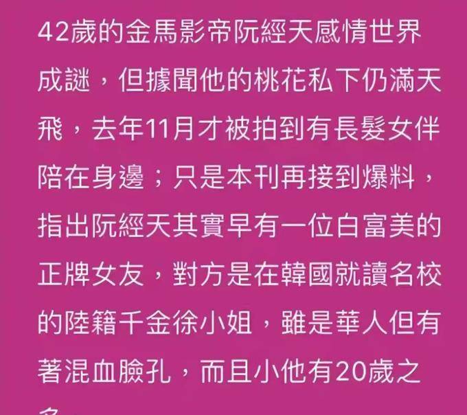 关于阮经天的花边新闻,其他的莺莺燕燕都被台媒作为点缀,使得过去的事情变得模糊不清。