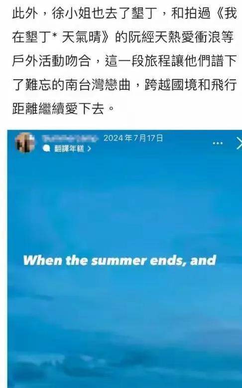 近期,阮经天与姓徐的女性再次踏上了出国旅行的蜜月之旅。