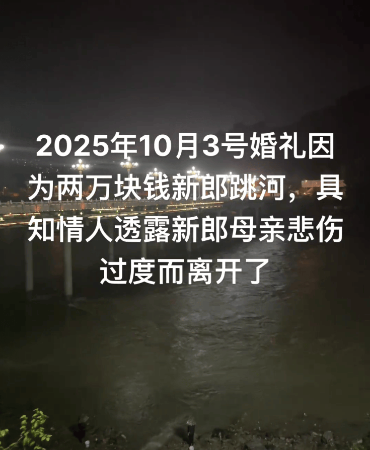 这桩事一传到网上,立刻引发热议。很多网友帮忙扒出双方的请柬,上面印着两人的名字和合影。新郎长得很阳光,笑容干净,看起来一点不像要在婚礼当天出走的人。甚至还有传言称,新娘在新郎跳河后也跟着跳下去,只是被及时救上来,身体无大碍。