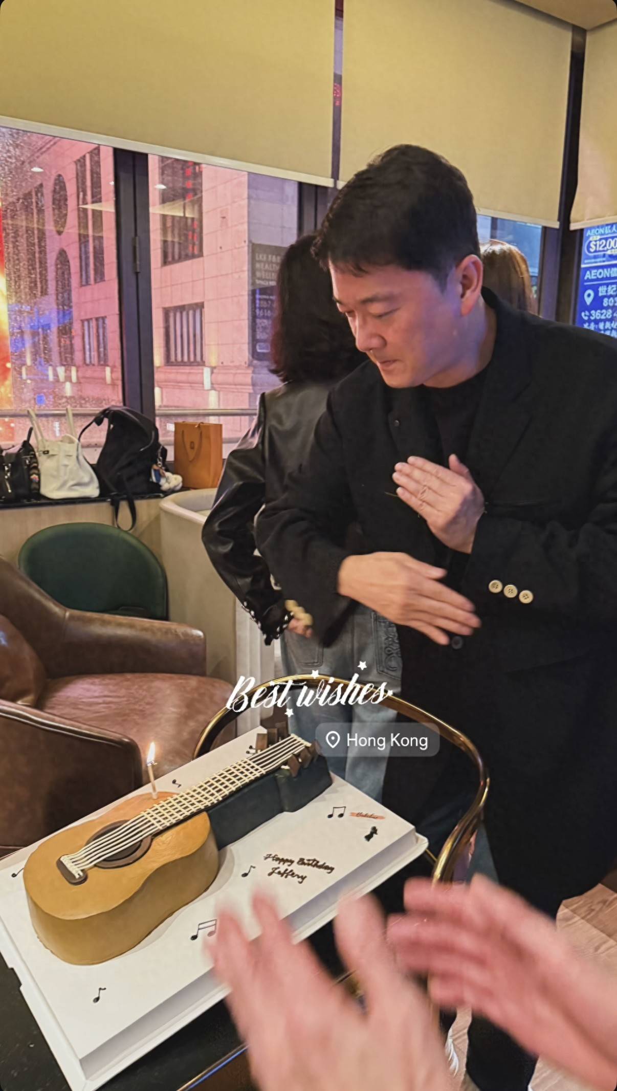 邱子杰的生日蛋糕是特别定制的,是一个小提琴造型的蛋糕。在蛋糕前,众人以各种组合合照,特别值得一提的是,只要有关之琳参与的合照,她几乎都在中间的位置,大概也是因为长得漂亮,又上镜,在中间特别养眼。关之琳当天打扮很休闲,牛仔裤搭配夹克外套,休闲归休闲,但是抢镜不假,成为了全场女生中最出众的一位,到底颜值出众,且气场还是强大的。