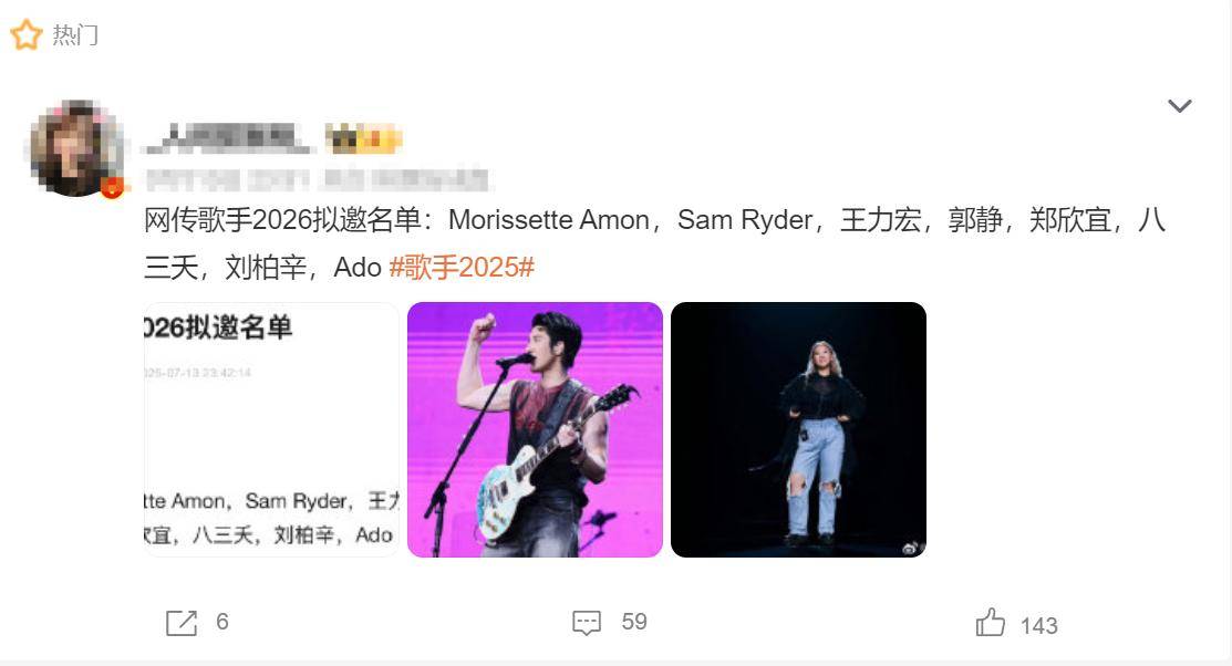 当《歌手 2025》的余音尚未散尽,网传的《歌手 2026》拟邀名单已在音乐圈掀起巨浪。这份名单以王力宏这位华语乐坛 “天王级” 人物为绝对核心,搭配 Morissette Amon、Sam Ryder 等四位风格迥异的国际唱将,再辅以郭静、八三夭等实力派助阵,彻底打破了往届 “华语为主、国际为辅” 的阵容格局。王力宏的领衔之势与国际歌手的强劲实力形成双重焦点,预示着一场 “本土天王守擂、全球强音攻擂” 的音乐对决即将上演。