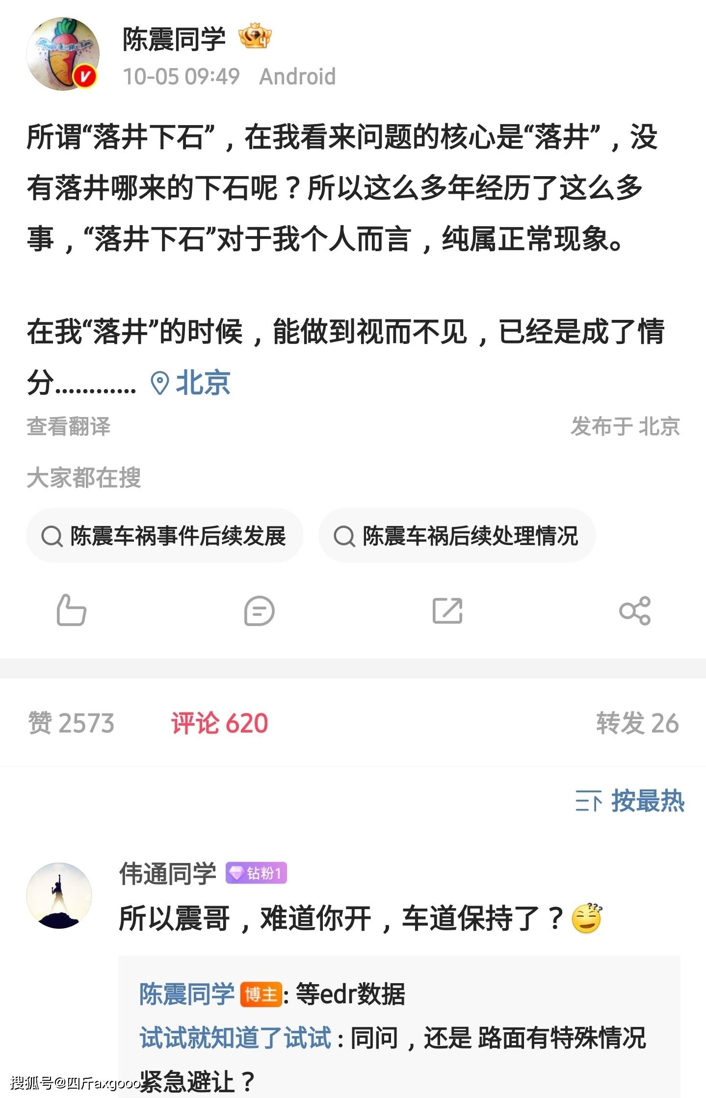 反而是一些网友,不满意陈震的态度,吐槽这个“老司机”,不是资历深浅,而是对规则与生命的敬畏。