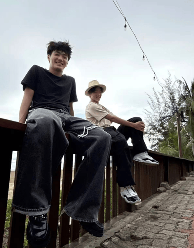 晒出的照片中,joe身穿黑色T恤牛仔裤,留着时髦的卷发,杨阳洋则穿着米色T恤黑色裤子,头上还戴着一顶编织帽,相比joe,身为体二代的杨阳洋似乎不太会打扮自己,对于他这身穿搭有网友就打趣表示穿的像当地农民。