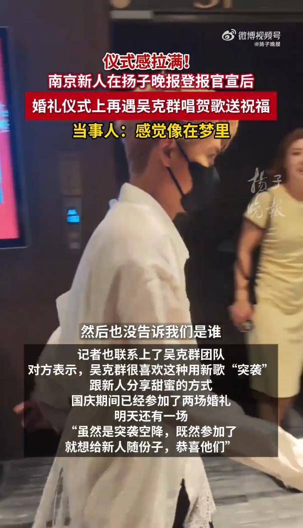这场“突袭”背后,其实早有伏笔。原来今年5月21日,梅琴夫妇选择在《扬子晚报》刊登结婚启事,用传统媒体记录人生重要时刻的方式,意外吸引了吴克群团队的注意。新娘坦言:“我们很喜欢这种能永久保存的形式,没想到会因此收获惊喜。”