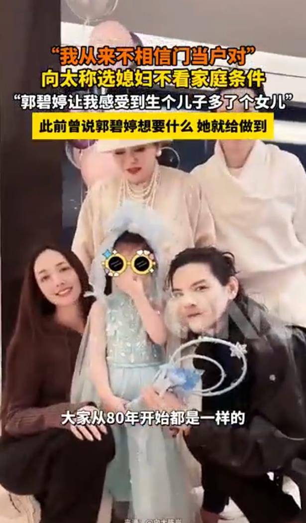如今,向太对郭碧婷的认可早已超越传统婆媳关系。她不仅支持郭碧婷为家庭做出的每一个选择,更用行动印证着“门当户对不重要,儿子喜欢且两人幸福才是真理”。这场豪门婚恋的背后,或许从来不是资源的交换,而是两个强大女性在价值观上的双向奔赴。