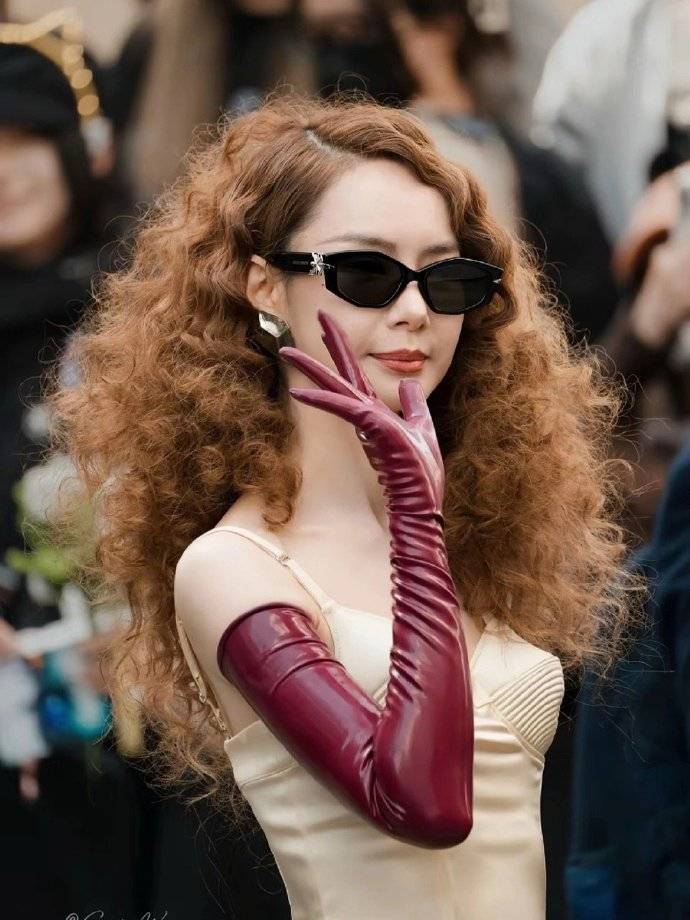 10月5日,戚薇在Mugler秀场的一组G社(Getty Images)生图突然刷屏,直接引爆了网友对“明星真实状态”的激烈讨论。镜头里,她身穿金色吊带长裙搭配酒红色漆皮手套,顶着贴头皮盘发,却被俯拍、怼脸特写拍成了“一米二身材”和疲态尽显的脸,瞬间被嘲“医美后遗症发作”“老了十岁”。