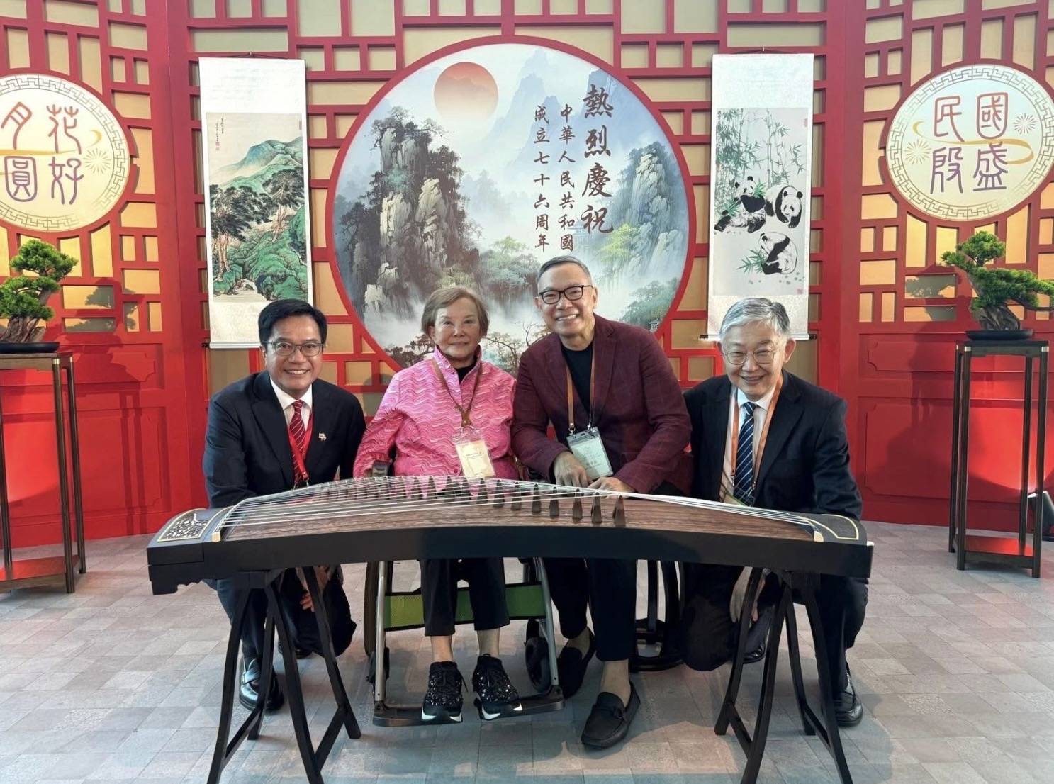 按照惯例,谢伟俊除了带着白韵琴参加升旗仪式,同时还带着白韵琴在广场周围看为庆祝国庆特别装点的一切,包括一些具有国风设计的建筑,再顺带与朋友们叙旧。在一间充满了国风的房间内,白韵琴与谢伟俊在一个古筝前留影,身边还有两个朋友。白韵琴与谢伟俊坐在中间,流露出一脸幸福的笑容,纵然她已经不复当年的美丽,如今已经是个老人,但是感受得到她当下的生活还是幸福、美满的。