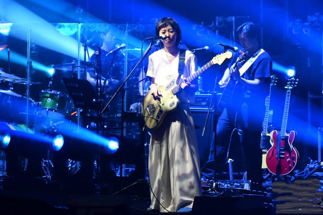 白色的上衣、白色的阔腿裤,一双白色的鞋子,抱着吉他唱歌的模样,太有文艺范了。才二十几岁的窦靖童,已经成了音乐界的顶流。