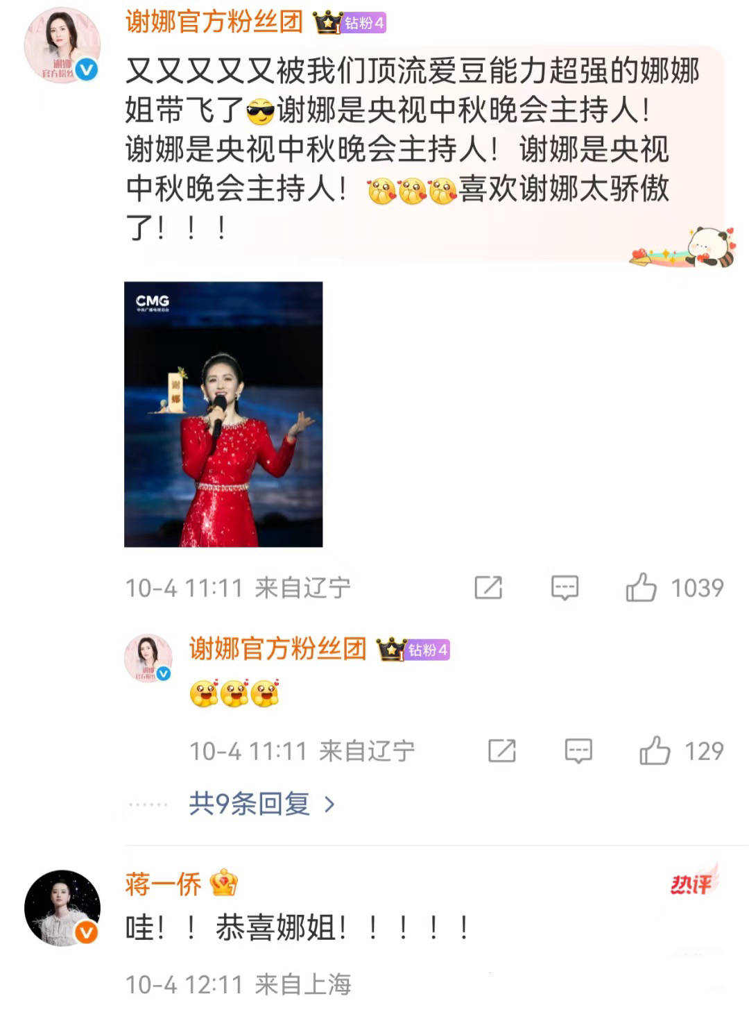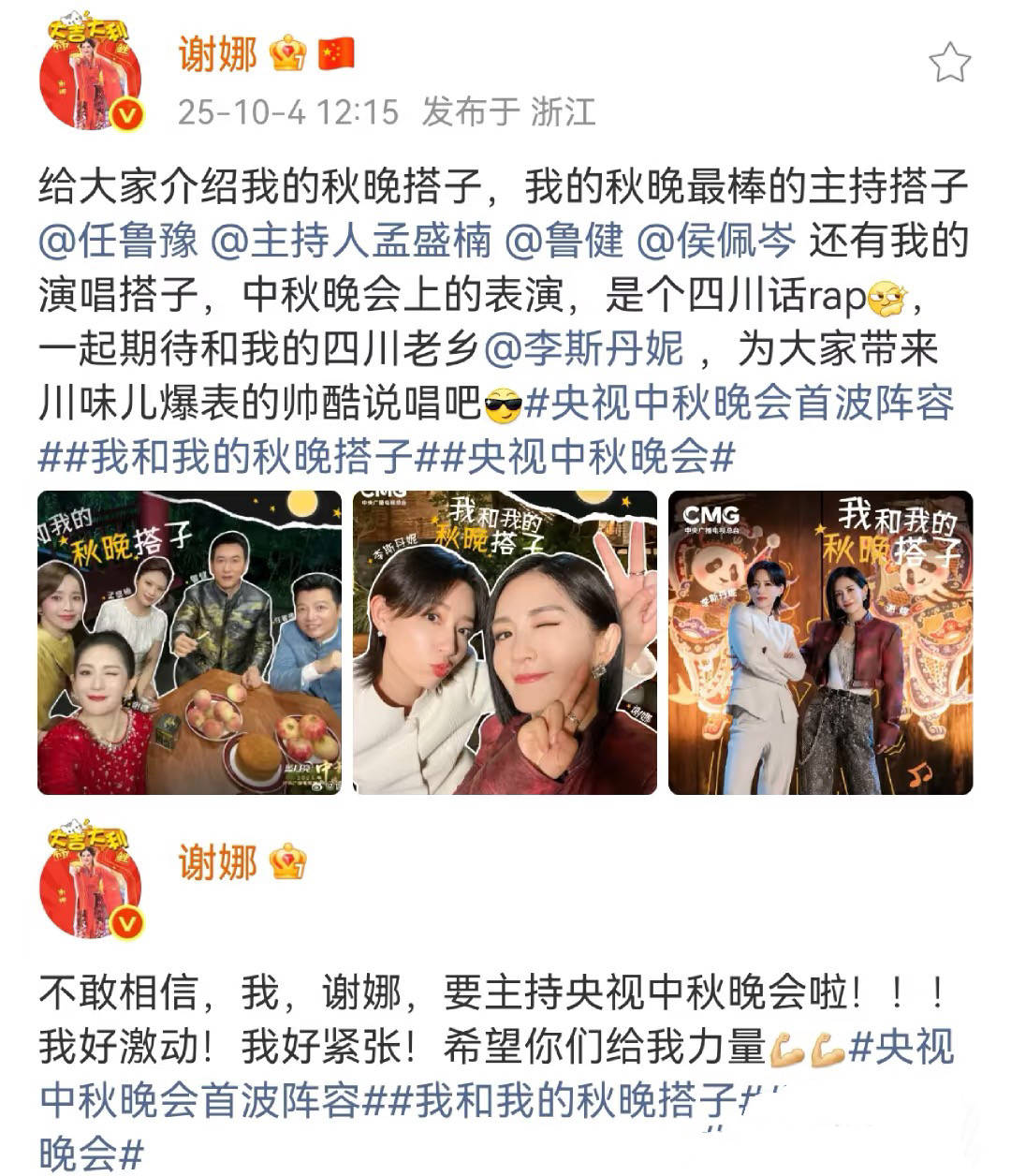 看到这个消息,谢娜粉丝团也给予了高度支持。谢娜是中秋晚会主持人,重要的事情一定要说三遍。
