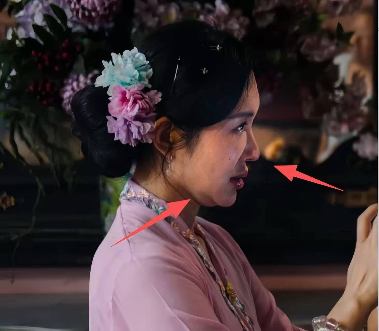 也有网友在拍摄间隙拍到了杜星霖的生图,她满脸色斑、还有双下巴,看起来面部馒化比较严重。生了四个孩子的杜星霖,也不那么年轻了。