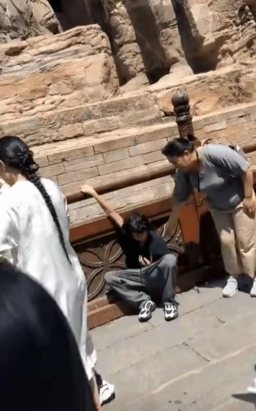他们一家还去参观了娘惹博物馆,十一假期的时候这里有很多游客,张纪中逛累了有点体力不支,一个人坐下来休息。