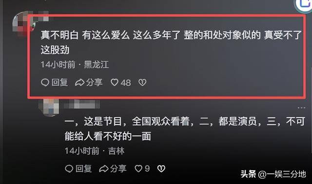 难怪网友辣评道:“整不明白,有这么爱吗,这么多年了,整的跟处对象似的,受不了。”