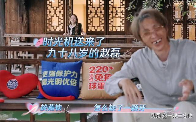 赵磊的老年妆,特意的抹黑了一颗牙齿,就为了逗於燕钦开心。