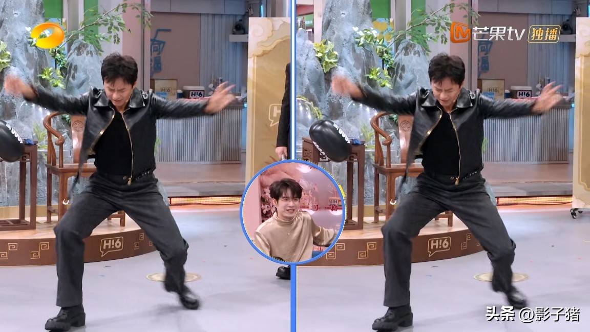 邓超一套复杂的动作,前进3步后退6步的,最后连自己的腰带都跳掉了。