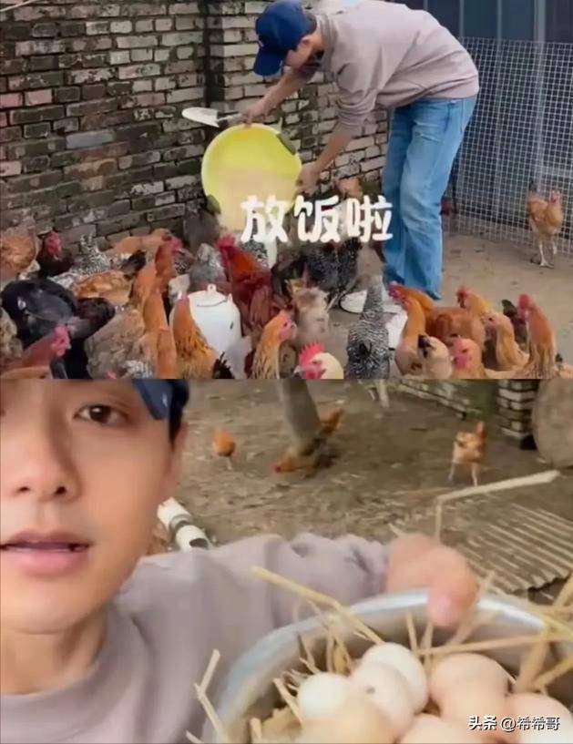 无独有偶,打开徐海为的社交账号,置顶视频不是新剧预告,而是他穿着胶鞋在鸡舍里捡鸡蛋,在树林里叫卖自己散养的鸡的画面。