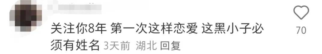 评论区里,有网友说:关注她8年,第一次这样恋爱,这黑小子必须有姓名。不过,她并没有理会这些留言。