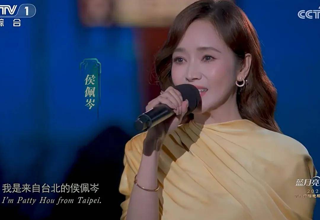 晚会开场,侯佩岑以一袭明黄色礼服登场,身姿窈窕。在介绍环节,她强调自己是来自台北的侯佩岑,并表示中秋明月一直在中国人的心中是那么的圆那么的满,可以说非常完整且完美的开场,既表达了个人出身,也有对祖国统一的期盼。