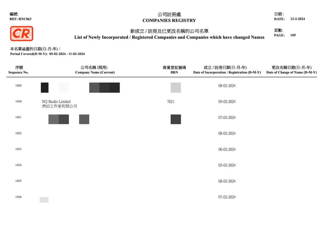 但根据注册资料显示,实际注册日期更早!早在2024年2月9日,也就是一年半之前,炎明熹就注册了“然后工作室有限公司”,该公司英文名为“NQ Studio”。