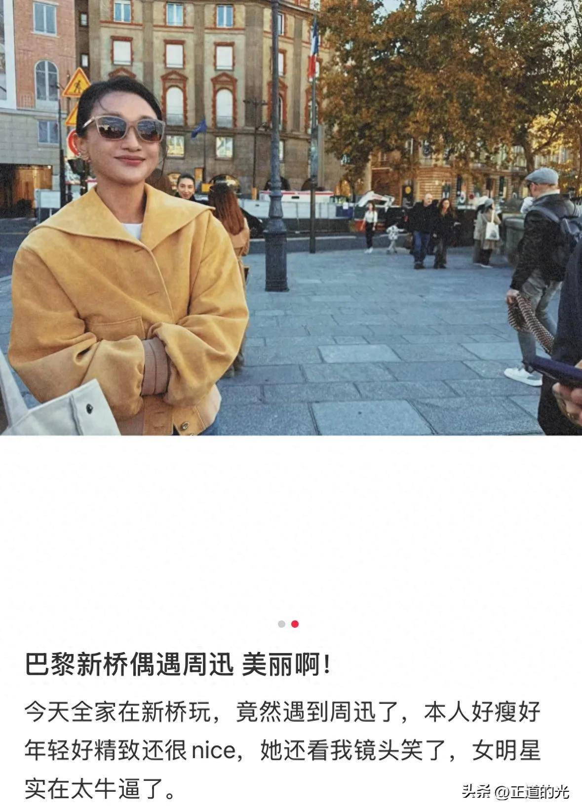 近日,有热心网友于浪漫之都巴黎邂逅了知名影星周迅,并兴奋地在网络上分享了与周迅的偶遇瞬间。照片中,周迅身着一袭来自2026年CHANEL品牌的顶级定制华服,一件温馨的米色调夹克外套,搭配简约而不失时尚的牛仔裤,整体造型流露出一种自然流露的优雅与闲适之美。在一张特写镜头下,已步入51岁芳华的周迅,头顶悄然泛起了银丝,这份不加雕饰的真实,意外赢得了网友们的纷纷点赞,直呼其率性得令人钦佩。
