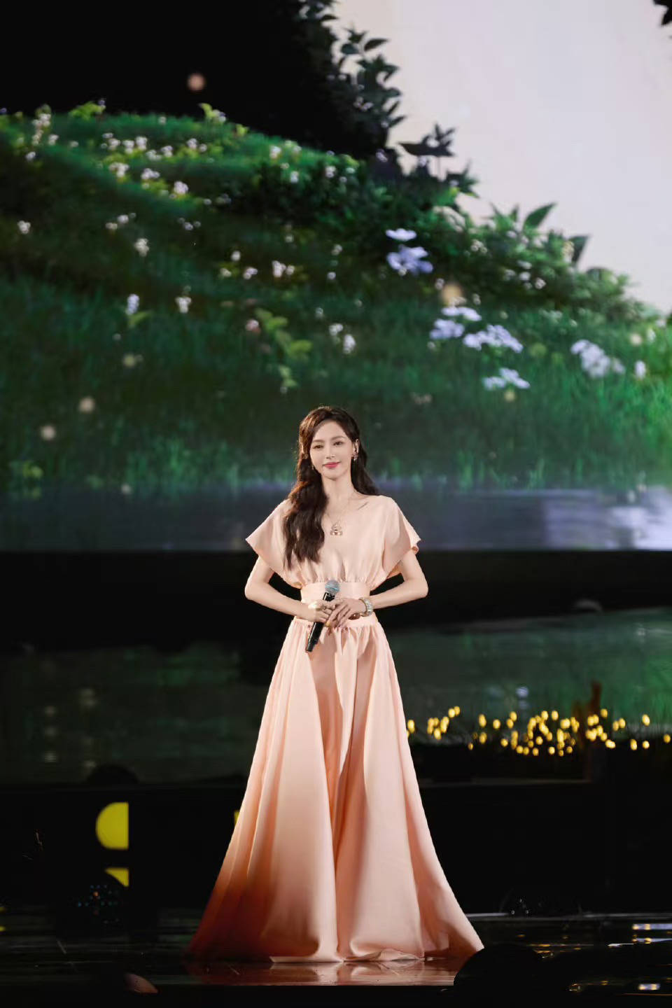 鹅黄色连衣裙,配上精致小巧的耳环,整个人美得闪闪发光。虽然不比从前一般年轻了,但她气质超级好。