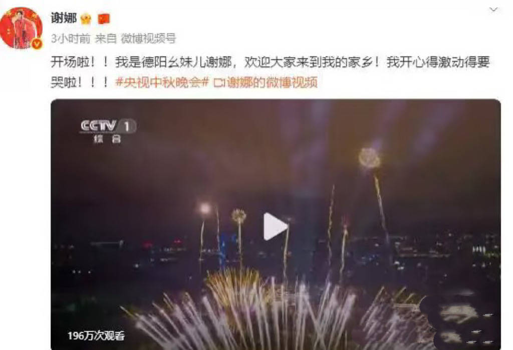 这次主持中秋晚会,谢娜还特意更新了动态,她以四川女孩的身份、欢迎大家来到自己的家乡。丝毫不隐瞒自己的激动之心,她说自己开心激动的要哭了。