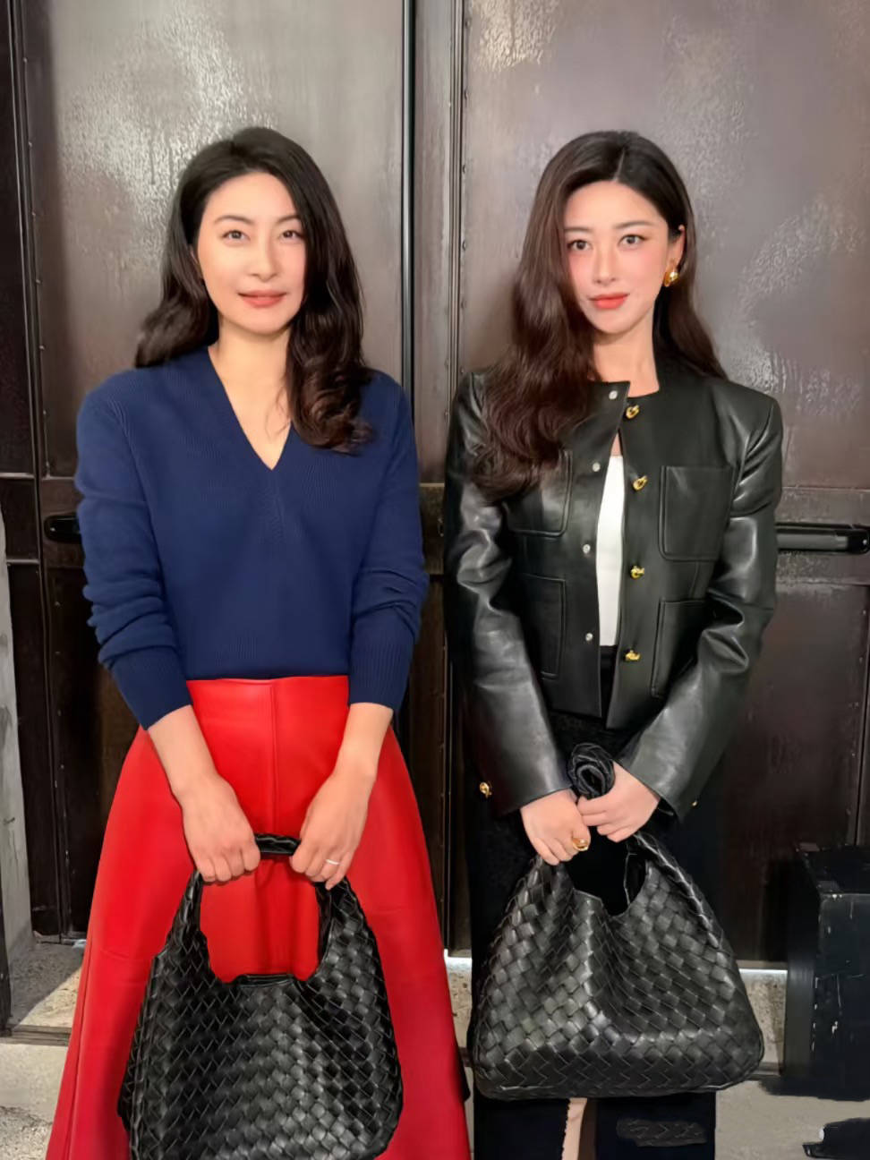 朱珠手里也是同款的包包,但朱珠并不是BV代言人。郭晶晶手里提着BV包,身上穿得也是BV红裙,这代言人太合格了。