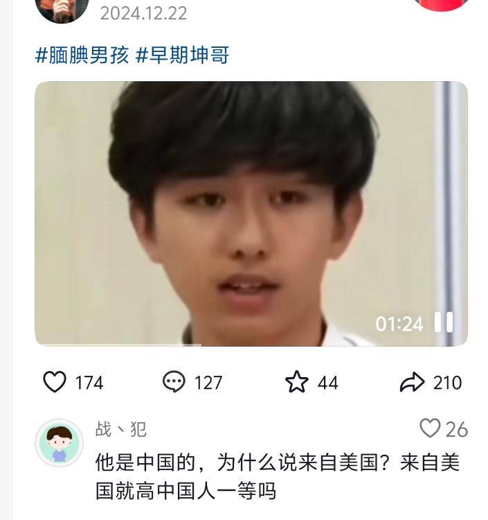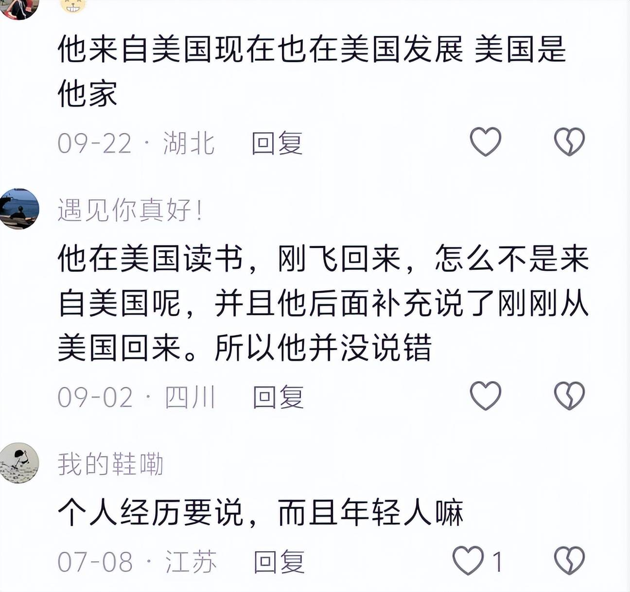 网友质疑他就是故意的,觉得说来自中国丢脸,说美国就比较高端。