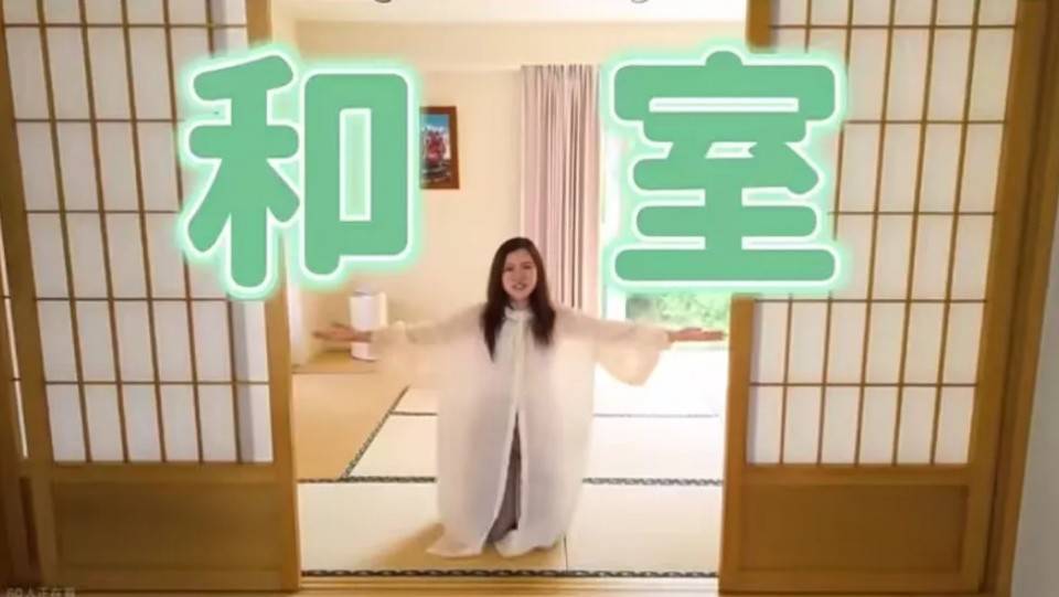 她在视频开头就用一句日语向网友打招呼,然后向大家展示了她家的和室,榻榻米和日式木门都透着一股和风。