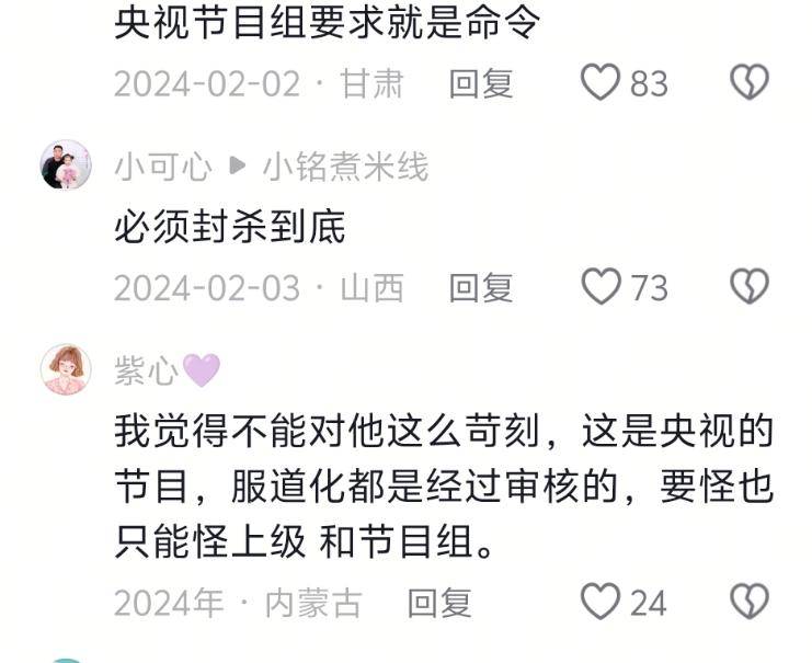 这节目本来是央视严格审核过的节目,就连他身上的服装可能也是央视节目组要求穿的。