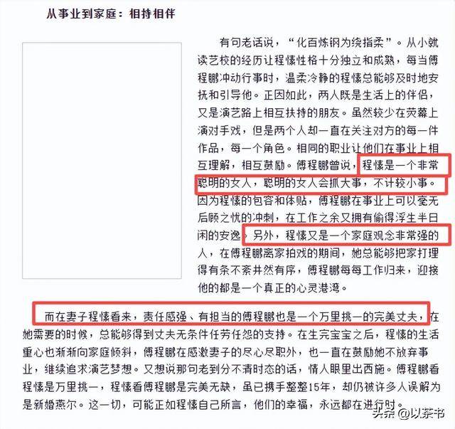 2011年一档节目里,傅程鹏程愫分享他们二人的感情生活,字里行间都是对彼此的新人,傅程鹏也成为了大家心目中的“好丈夫”。