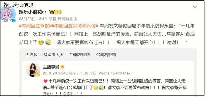 李湘淡圈后对舆论把控力大不如前。此次 live 图风波不仅触怒李冰冰阵营,更暴露其团队危机应对的短板。从二手物品争议到释永信关联疑云,数次争议均因回应滞后或信息模糊发酵,如今又陷资源圈博弈,口碑与人脉双双受损。