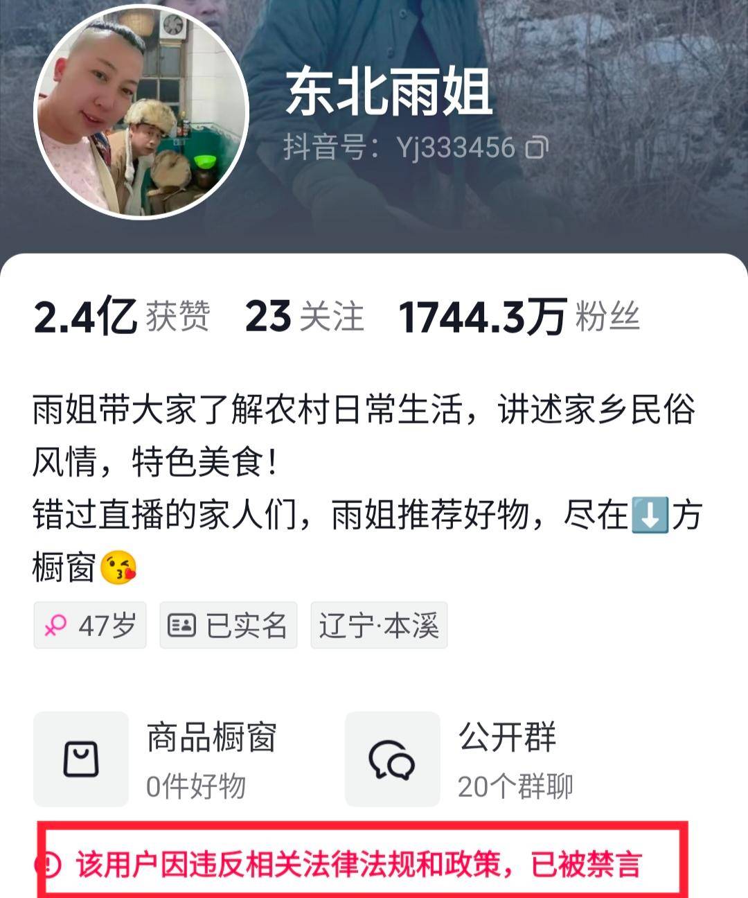 不仅如此,相关部门对于东北雨姐的处罚也已经公布,雨姐的账号不仅没有被封禁,而且现在依旧可以被搜索,只是无法进行关注和更新,根据记者的采访,目前东北雨姐并不属于劣迹网红,只是处于整改阶段,而且或许不久后账号就可以恢复正常