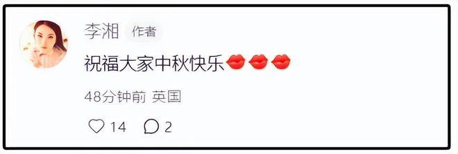 从IP来看李湘人在英国过节,她先是配文“中秋快乐”,第二天又在评论区继续给大家送上祝福。
