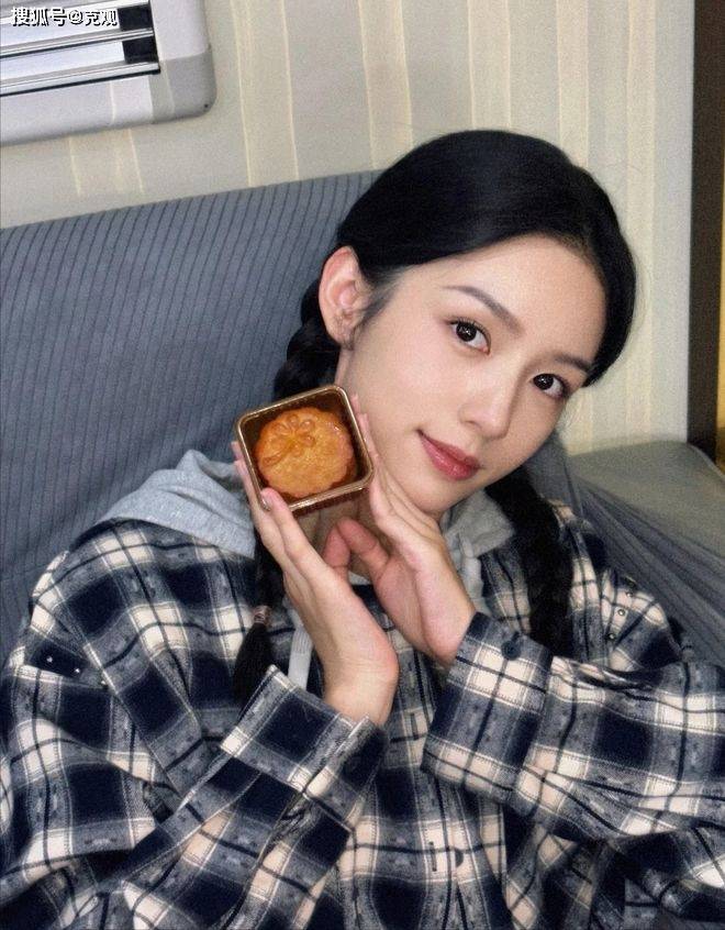 周也分享了一组月饼照,她穿着黑白格纹外套,扎着小辫子看着十分朴素。她先是对着镜头展示了月饼,之后还展示了月饼的馅儿,吃的是蛋黄莲蓉月饼。