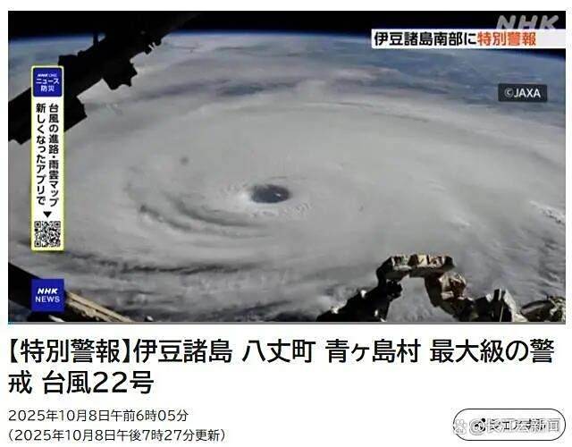 据日本气象厅消息,伊豆群岛可能出现因强风导致建筑物倒塌、因巨浪引发大范围浸水等数十年一遇的严重灾害,此外还可能发生山体滑坡、低洼地区浸水及河流泛滥等次生灾害,呼吁当地民众密切关注避难信息,并前往安全场所避险。