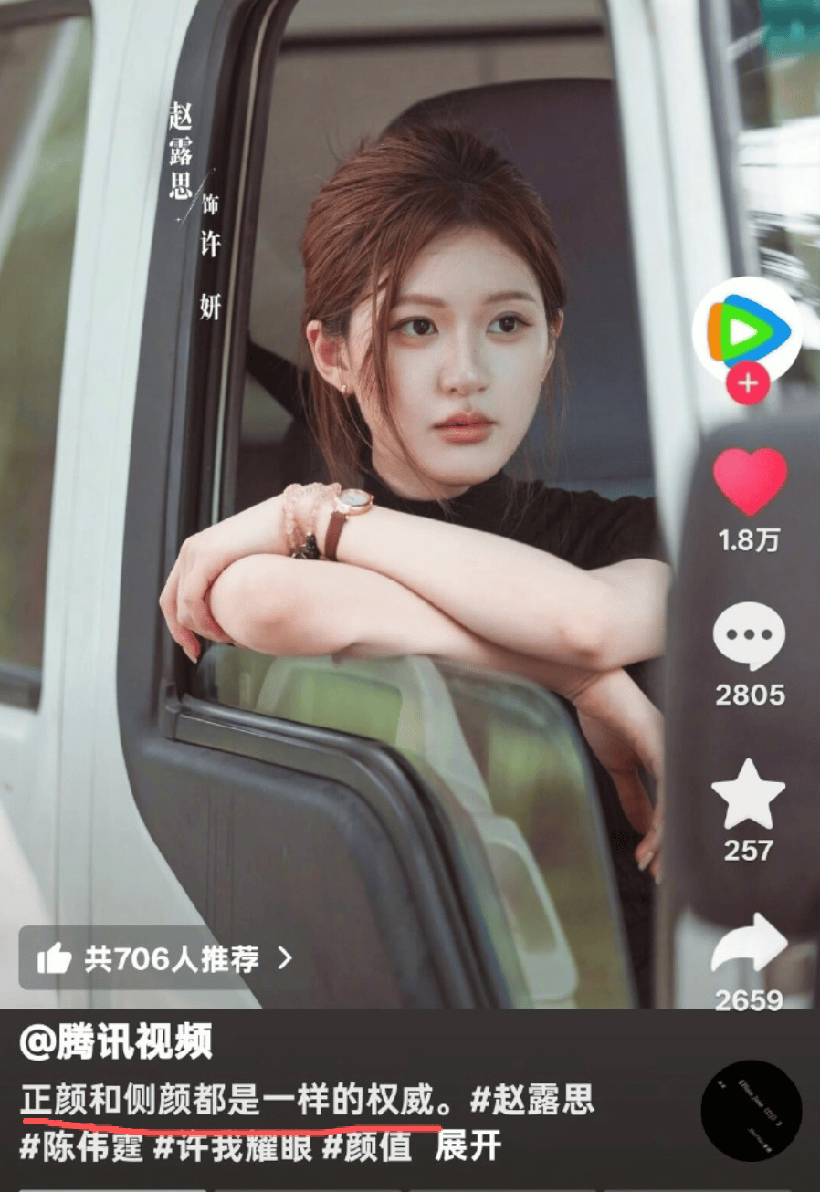 结果很快合作过爆款剧《永夜星河》的老东家腾讯视频发出“对家”赵露思的素材,配的文案是“正颜和侧颜都是一样的权威。”很难不让人怀疑是在内涵什么。