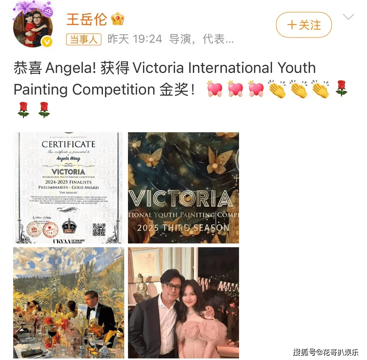 王诗龄获得英国“维多利亚国际青少年绘画大赛”金奖,李湘和王岳伦第一时间发微博为女儿庆祝,别说,这对离婚八百年的夫妻,在爱女儿这个面子活上,永远都挺同步的。